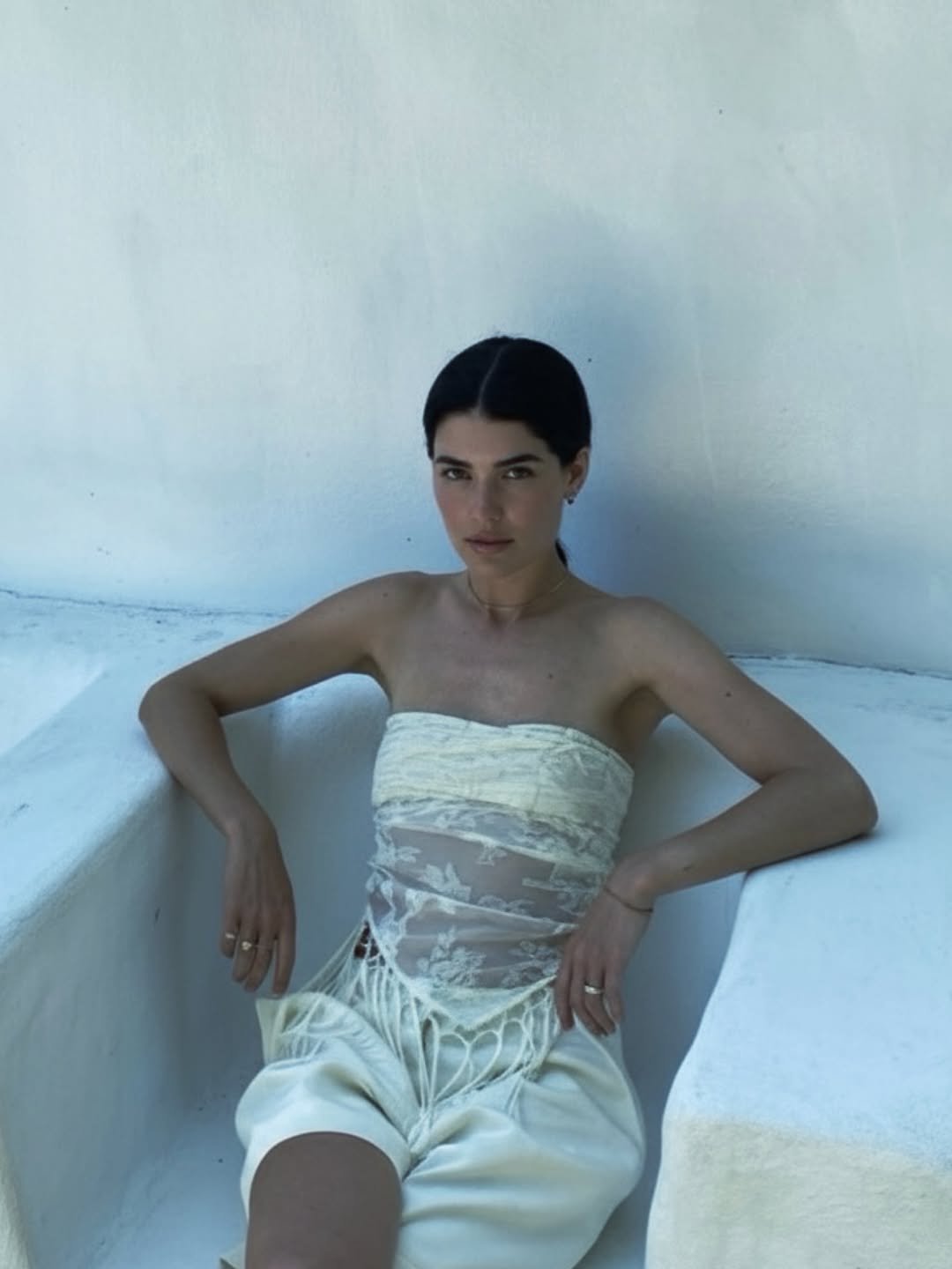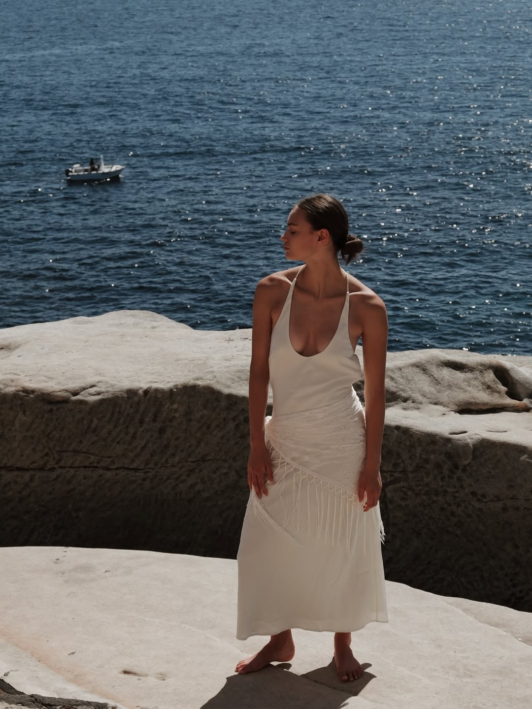 - Cut in a fluid triangle silhouette