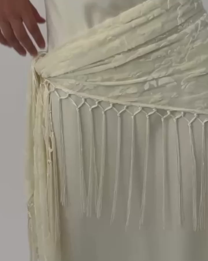 - Lightly fringed and finished with tactile tassels
